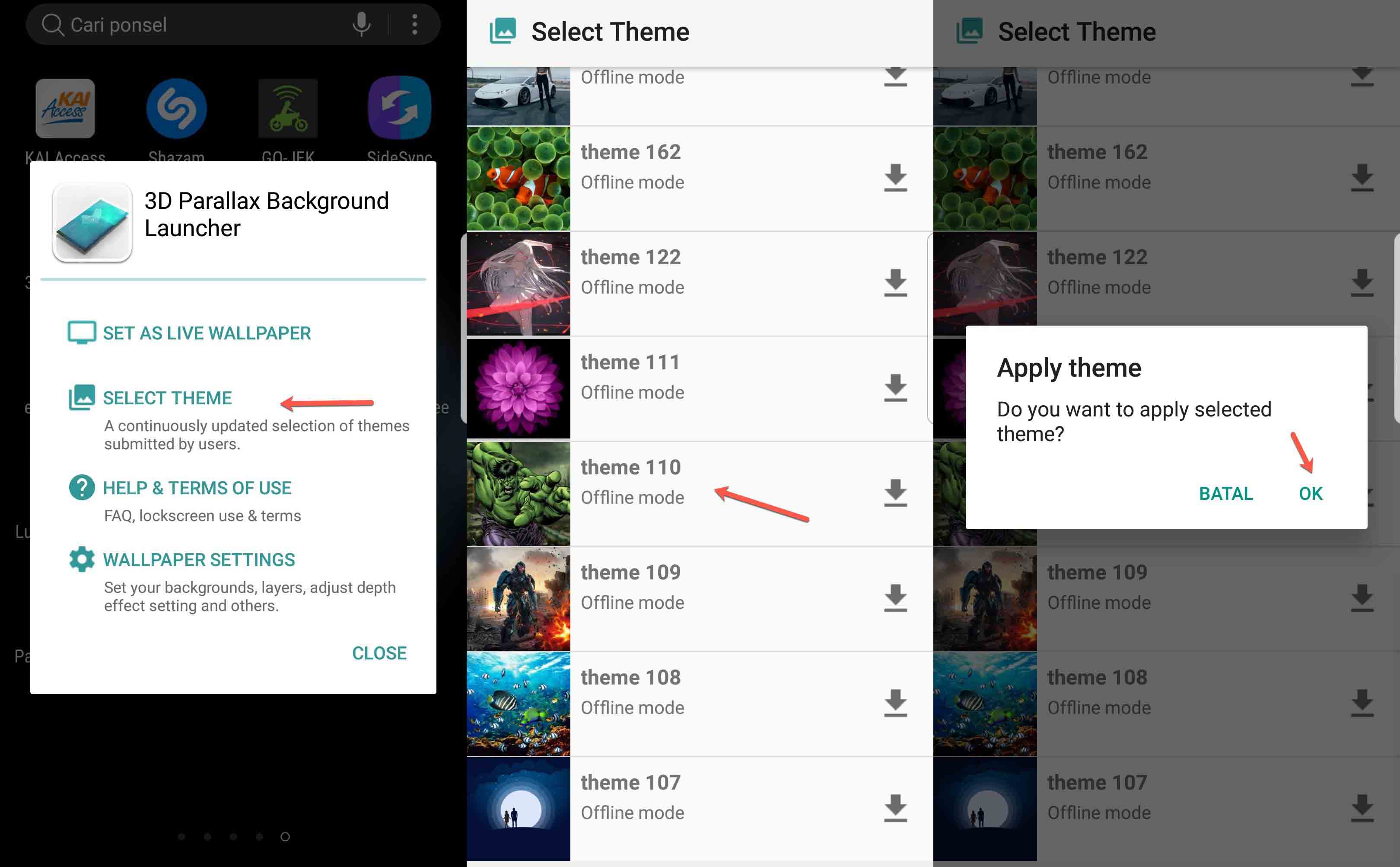 3. Selanjutnya refresh/force stop, jalankan ulang kembali aplikasi 3D Wallpaper Parallax, hasilnya nanti kamu akan melihat semua tema-nya. Selesai, selamat mencoba
