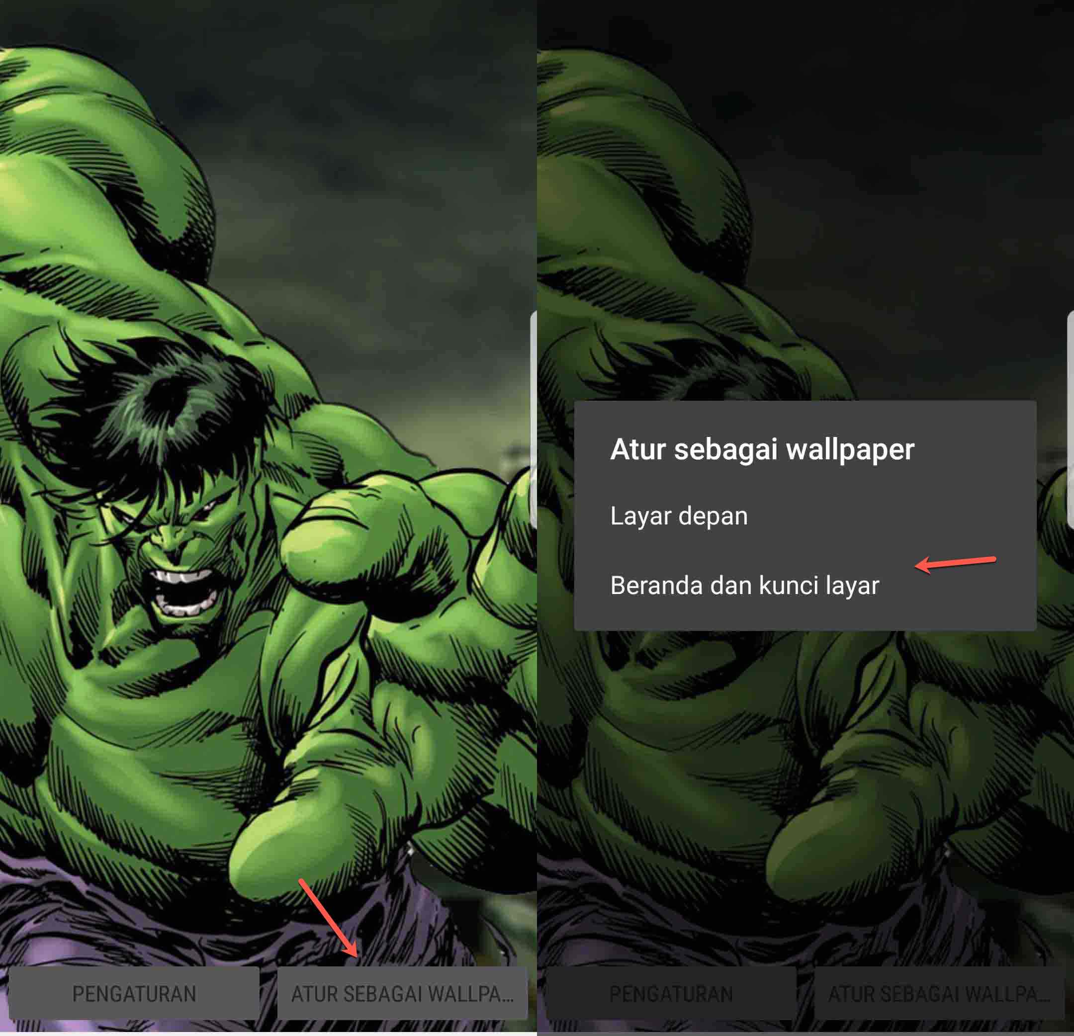 5. Pilih Atur Sebagai “Wallpaper” dan pilih ingin ditampilkan di “Layar depan” atau “Beranda dan kunci layar”.