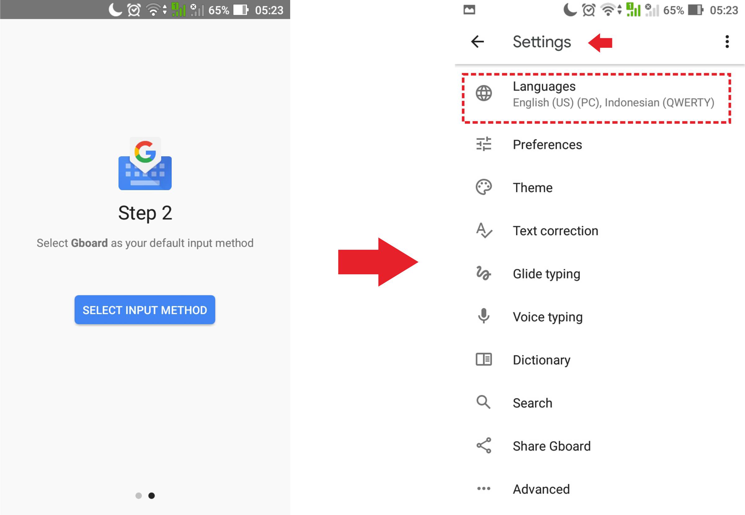1. Unduh aplikasi Google Keyboard di perangkat smartphone kamu. (beberapa merk smartphone terkadang belum terinstall google keyboard di dalamnya). Jika sudah klik buka. Kemudian masuk ke menu settings, dan selanjutnya pilih menu Languages.