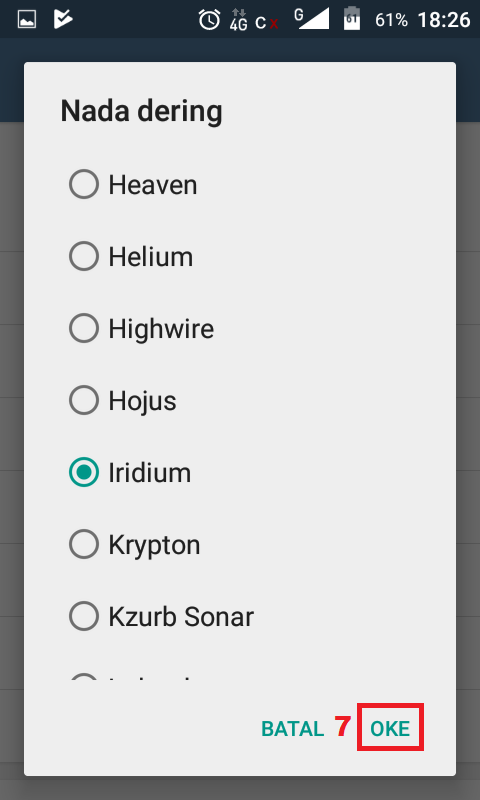 7. Pilihlah suara nada dering sesuai keinginan kamu. Setelah itu, klik OKE.