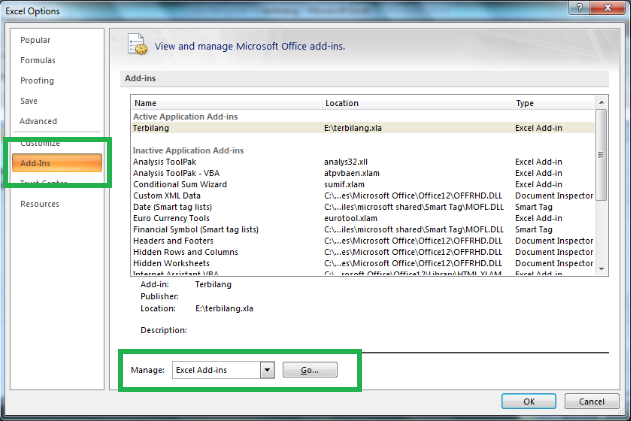 7. Akan muncul kotak dialog ‘Add-Ins’.