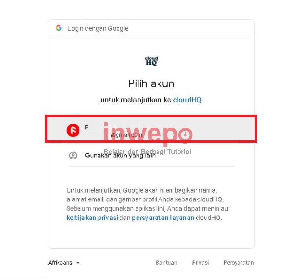 5. Lalu kamu pilih akun Google kamu untuk dilakukan proses pembuatan akun (ekstensi tersebut hanya meminta nama dan email saja).
