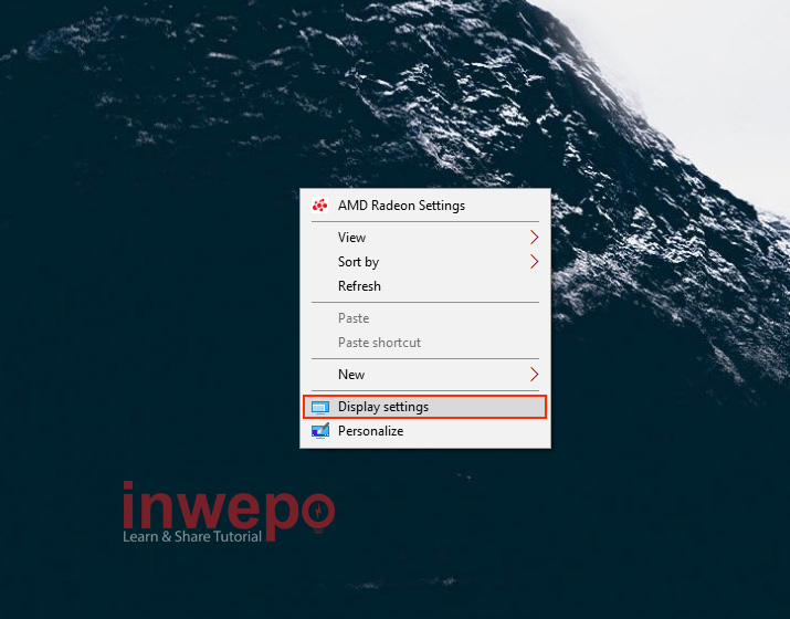 1. Klik kanan pada “Desktop” – Klik “Display Setting“.