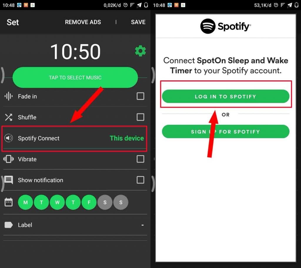 Langkah keempat, tap pada Spotify Connect selanjutnya tap LOG IN TO SPOTIFY untuk menyambungkan SpotOnAlarm dengan akun Spotify kamu.