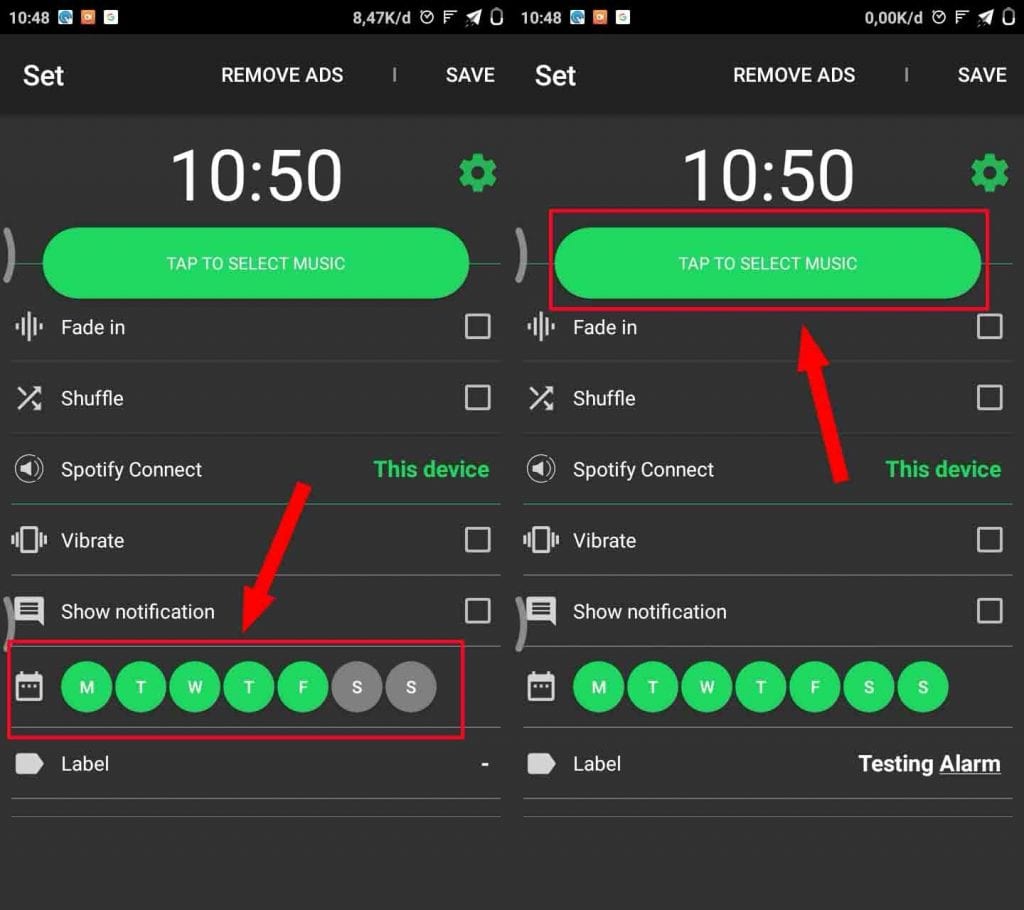 Langkah kelima, tap icon bulatan hari untuk mengatur hari apa saja alarm berbunyi kemudian sentuh TAP TO SELECT MUSIC.