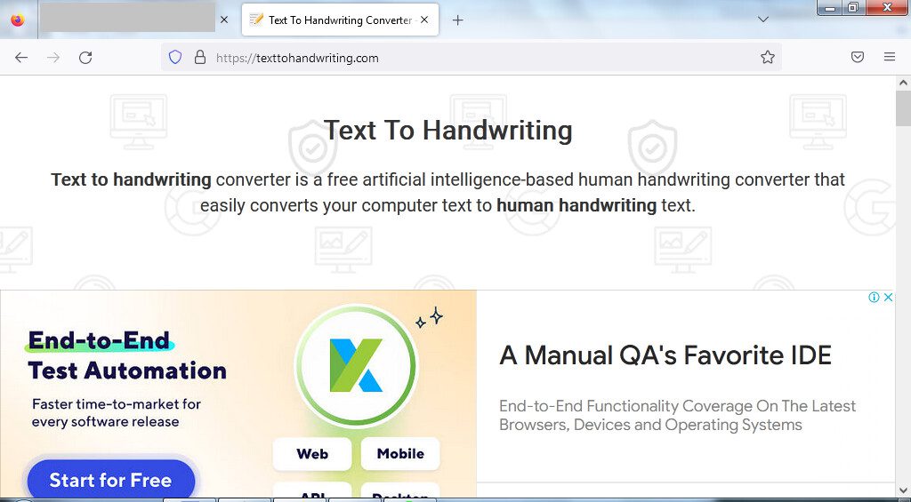 2. Sekarang, buka salah satu browser yang sudah terinstall di perangkat PC maupun smartphone kita. Kunjungi dan buka situs Text to Handwritting Converter https://texttohandwriting.com