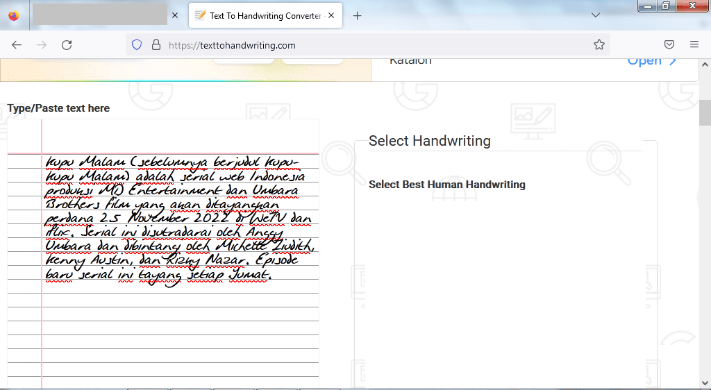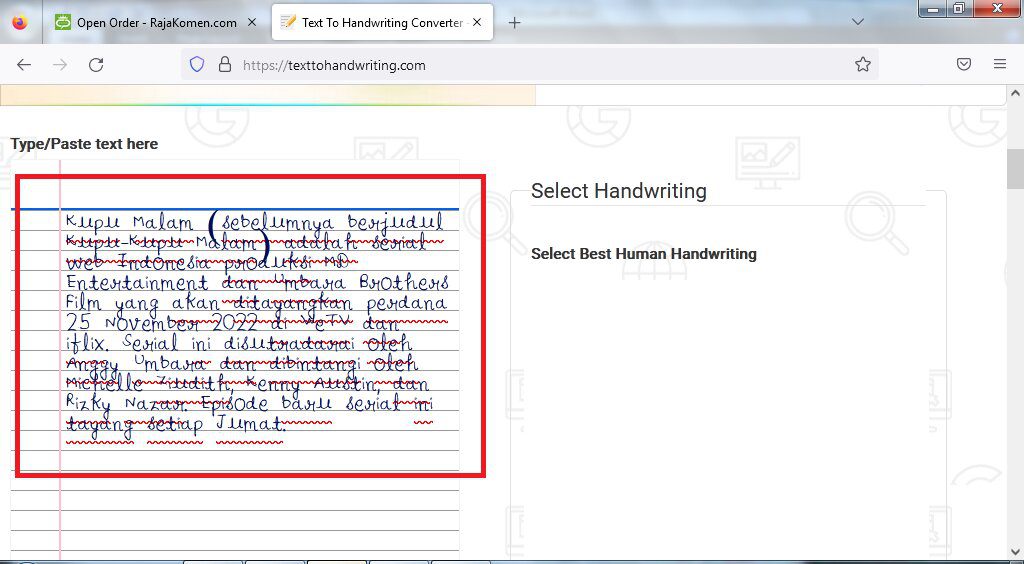 3. Pastekan teks/ artikel tersebut pada kolom yang tersedia dan secara otomatis teks tersebut akan berubah menjadi tulisan tangan.