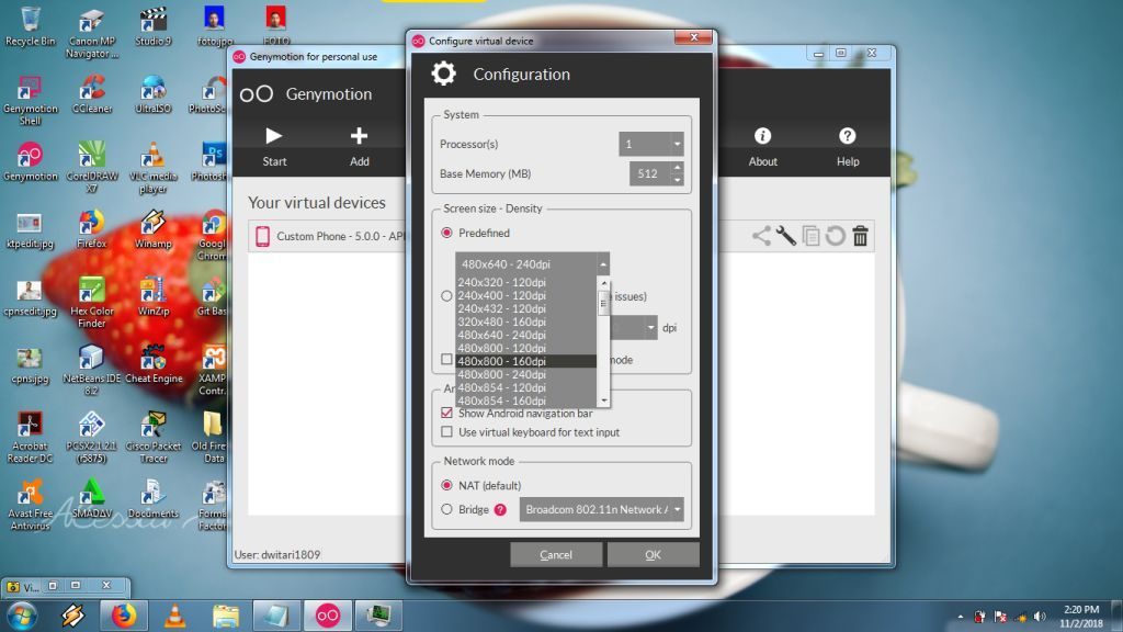 Penulis akan berikan tutorial cara mengubah ukuran layr emulator Android di Genymotion. Ini cocok untuk memasang emulator Android di dalam notebook yang dikenal dengan ukuran layar yang kecil atau sebaliknya.