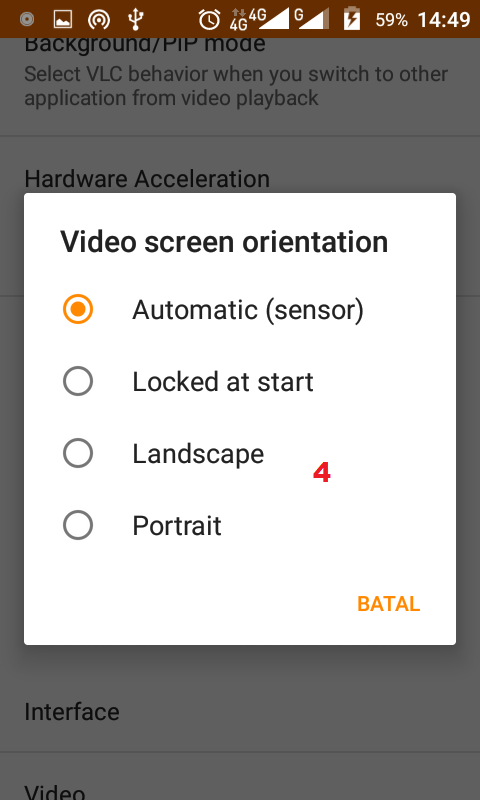 4. Pilihlah tipe video screen orientation sesuai keinginan kamu. Kemudian, ketuk Back pada HP Android kamu.