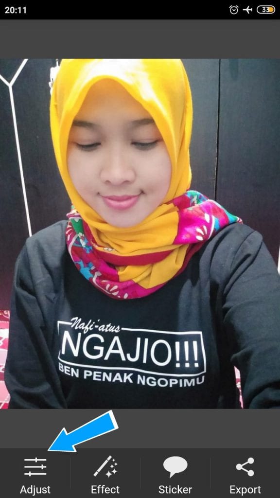 3. Selanjutnya, otomatis kita dialihkan ke halaman penampilan foto yang sudah kamu masukkan tersebut, maka langsung saja kamu pilih menu Adjust.