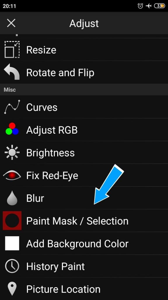 4. Jika sudah, selanjutnya kamu gulir ke bawah lalu cari dan pilih menu Paint Mask / Selection lalu klik.