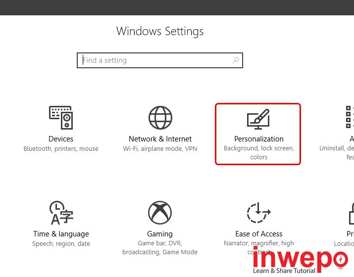3. Klik “Personalization“.