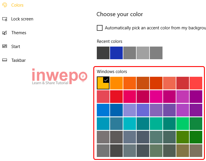 5. Pilih warna yang ingin diterapkan pada Windows kamu.