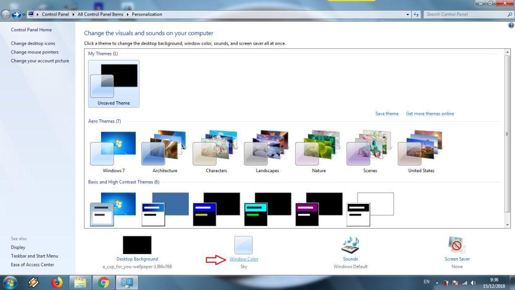 2. Klik Window Color untuk mengubah warna tampilan pada Windows 7.