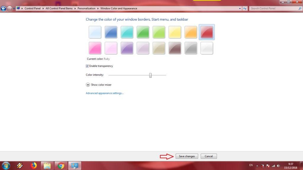 3. Pilihlah warna-warna yang kamu inginkan. Setelah itu, klik Save changes untuk menerapkan perubahan tampilan windows border, taskbar, dan Menu Start.