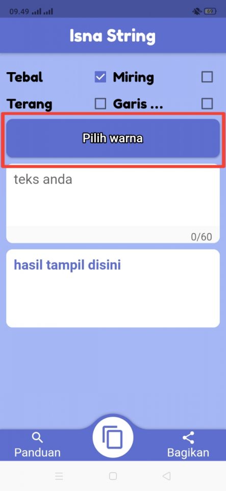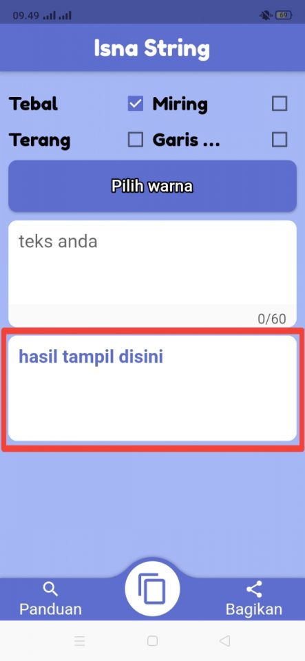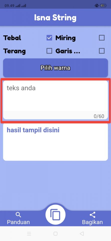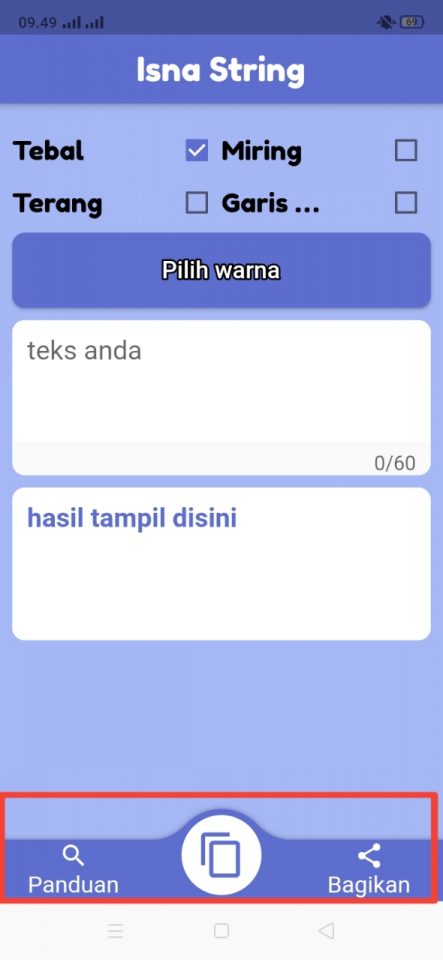 2, Buka aplikasi dan kamu bisa memilih gaya tebal, miring, terang, dan bergaris bawah seperti gambar berikut ini.