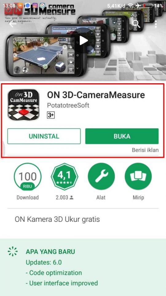 1. Unduh dan install terlebih dahulu aplikasi untuk mengukur yaitu ON 3D Camera Measure.
