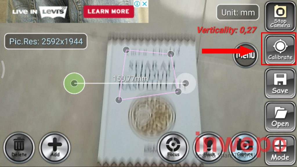2. Buka aplikasi ON 3D Camera Measure lalu arahkan kamera ke benda yang akan di ukur. Selanjutnya tap Calibrate.