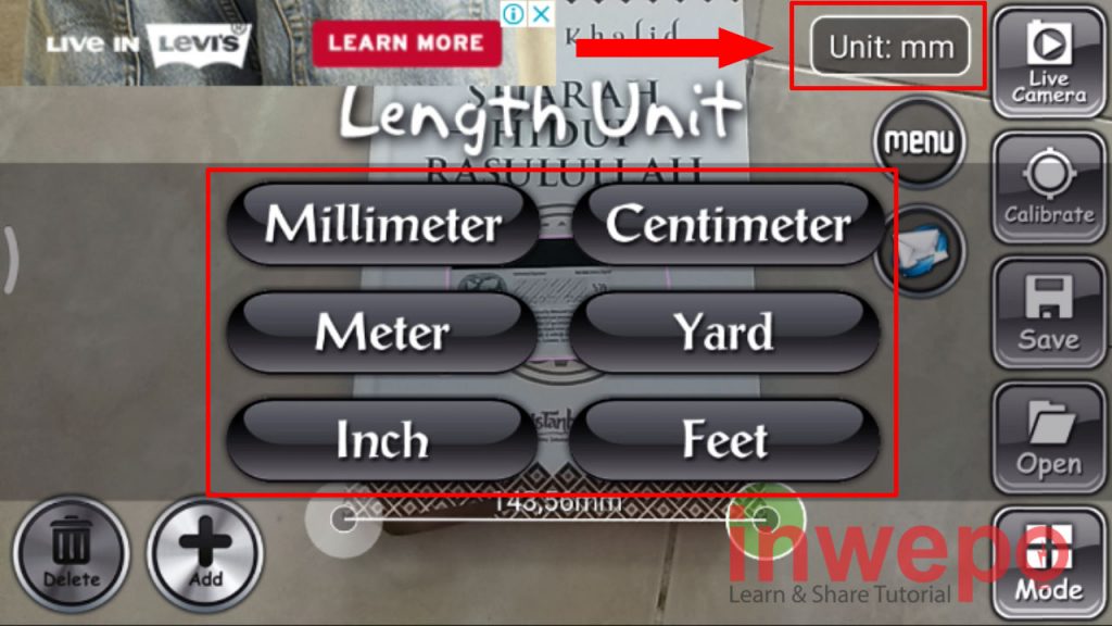 7. Untuk mengganti satuan unit pengukuran tap pada Unit dan pilih satuan pengukuran yang akan kamu gunakan.