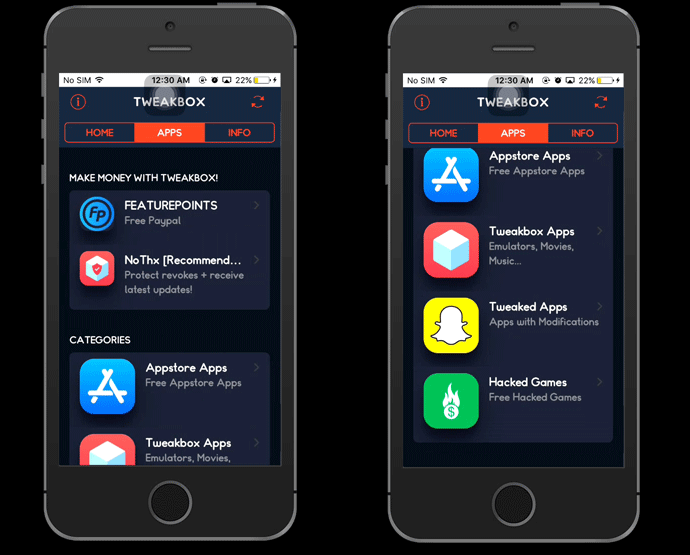 3. Buka aplikasi Tweakbox – pilih APPS – pilih Tweaked Apps.