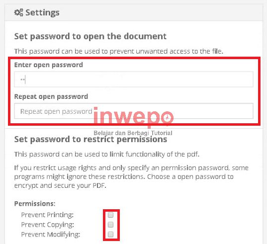 Pemberian password pada berkas PDF ini berbeda dengan password pada umumnya, karena pada berkas PDF ini diberikan 2 jenis password yaitu: