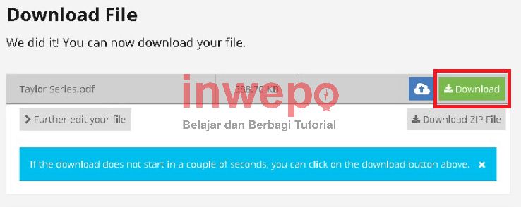 6. Lalu kamu klik pada tombol download untuk mengunduh berkas PDF yang sudah diberi password.