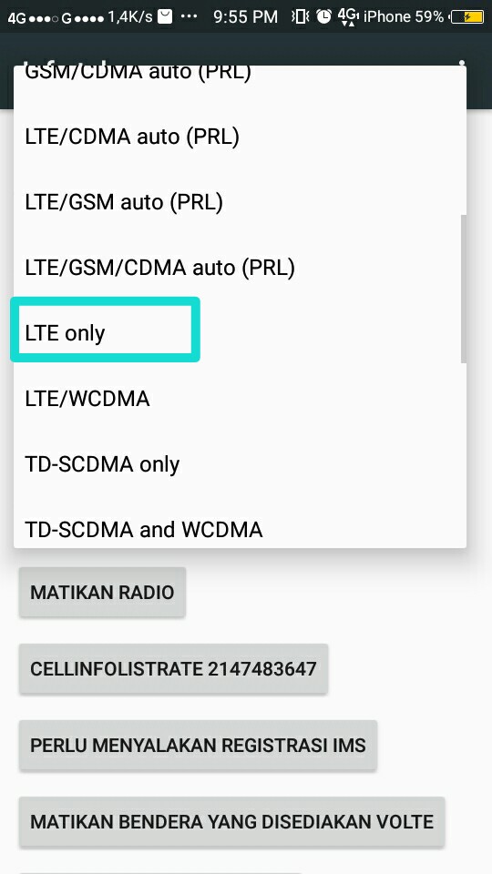 4. Scroll ke bawah, pilih tulisan yang ada di bawah, “Setel jenis jaringan yang disukai:”