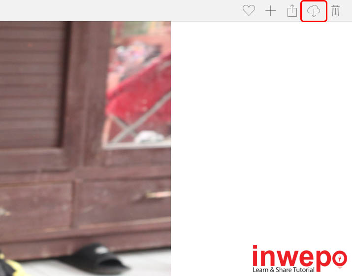 3. Buka foto yang ingin kamu simpan ke laptop / pc – Ketuk logo awan dan tanda panah ke bawah di kanan atas peramban web kamu.
