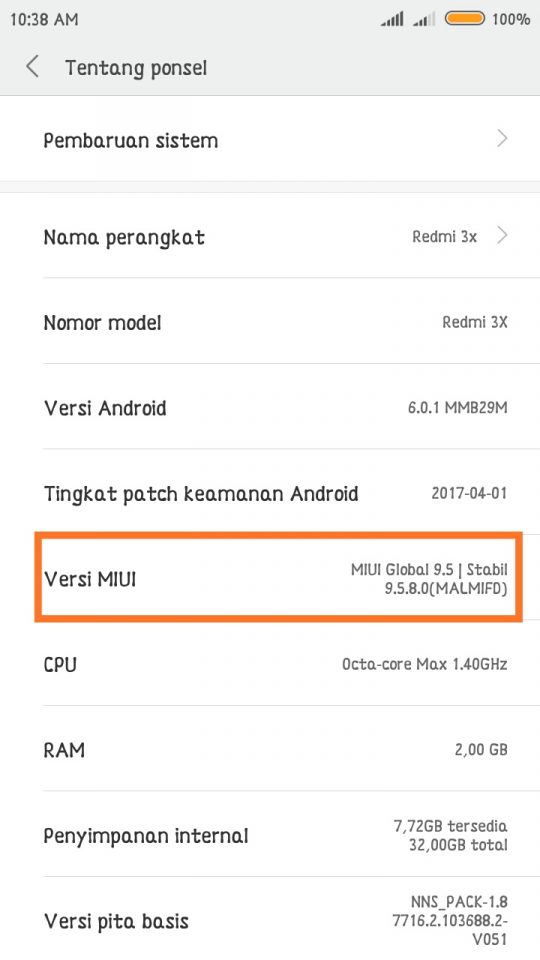 2. Tap sebanyak lima kali secara beruntun di bagian versi MIUI sampai muncul tulisan kecil “anda telah menjadi pengembangan”. Ini dilakukan untuk mengaktifkan menu pengaturan “opsi pengembang”, karena menu pengaturan ini belum bisa dilihat jika belum diaktifkan.