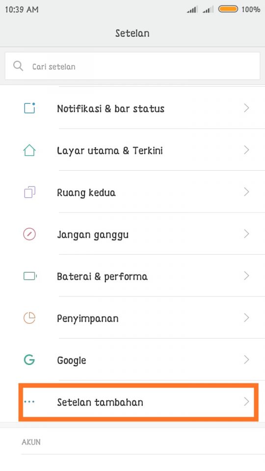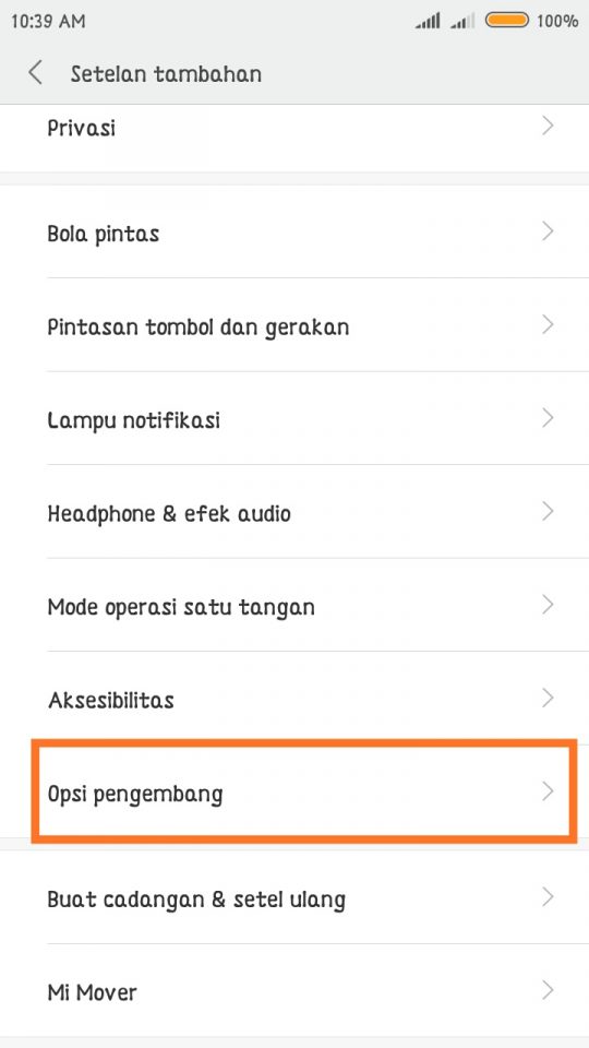 3. Kembali ke menu setelan – Tap setelan tambahan (additional setting) – scroll ke bawah – Tap Opsi pengembang.