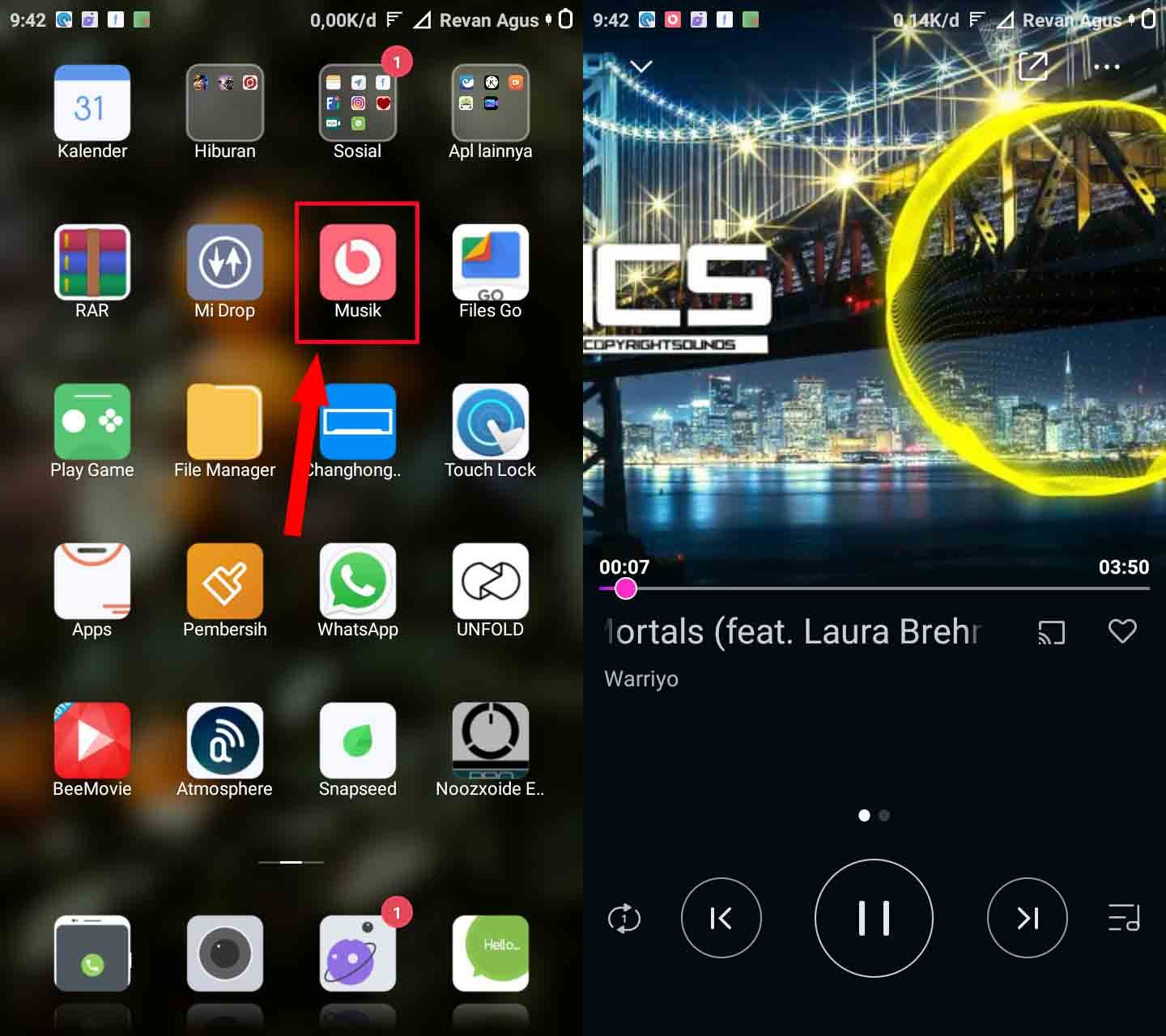 Langkah kedua, buka aplikasi musik yang ada di smartphone kamu dan putar sebuah lagu.