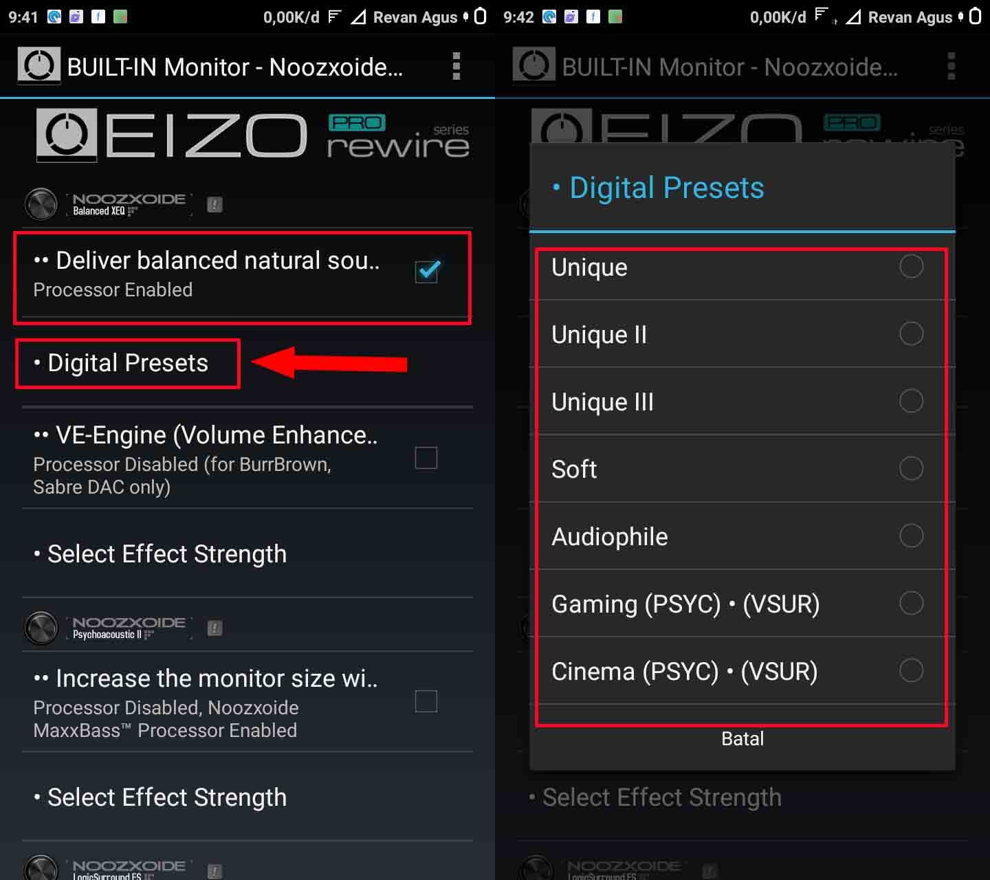 Langkah keempat, Tap ceklis pada Deliver balanced natural â Tap Digital Presets kemudian dengarkan â pilih efeknya sesuai dengan telinga kamu.