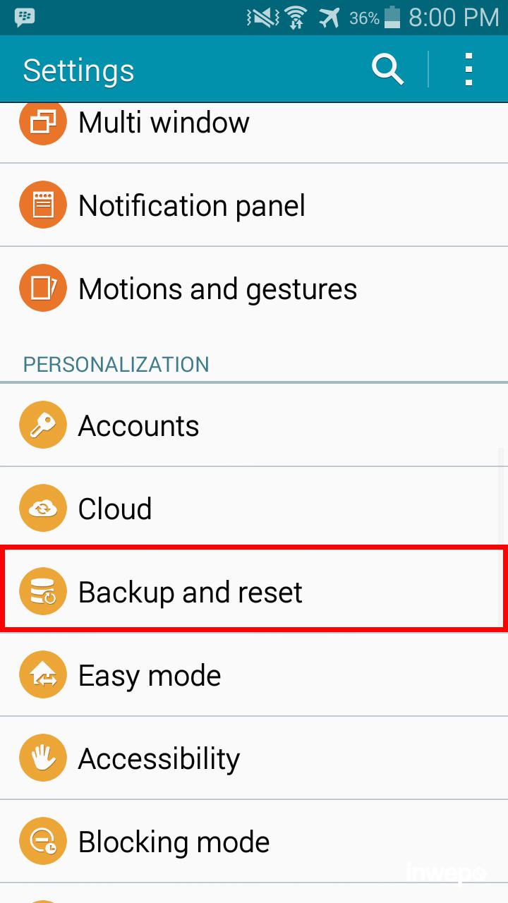 Caranya, masuk ke Setting, pilih Backup and Reset lalu centang kedua kotak yang ada di dalam menu tersebut.