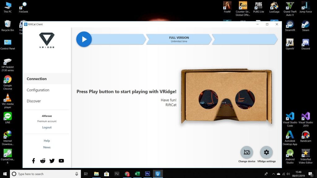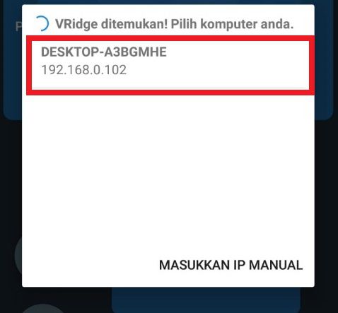 4. Jangan lupa untuk menghubungkan aplikasi Riftcat 2.0 ke smartphone pertama kamu, dan jika sudah terhubung, kamu buka aplikasi Vridge Controller pada smartphone kedua kamu, pada proses pencarian akan muncul 1 device yang dimana device tersebut adalah Laptop/PC kamu, kamu tap pada device tersebut dan kontroler sudah terhubung.