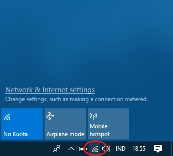 2. Klik Logo Network pada bagian kanan bawah, jika tidak ada berarti berada pada hidden icons.