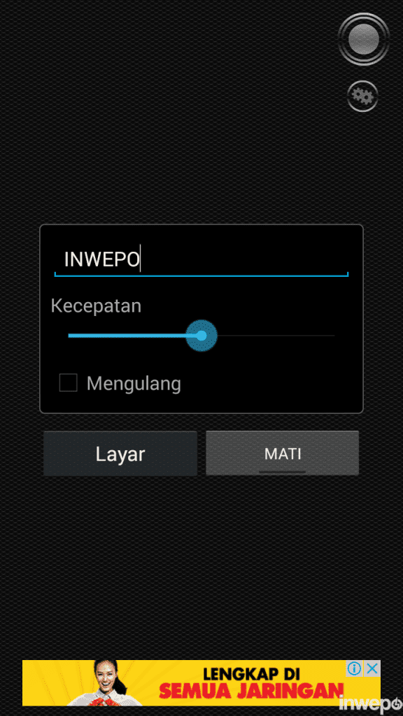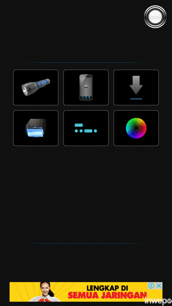 3. Jalankan aplikasi Tiny Flashlight LED, lalu pilih tombol berbentuk lingkaran disudut kanan atas untuk memilih.