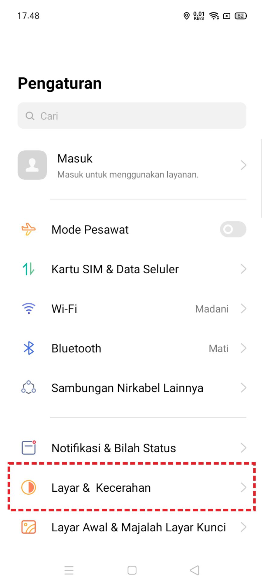 2. Setelah masuk ke halaman menu pengaturan, pilih tab layar dan kecerahan.