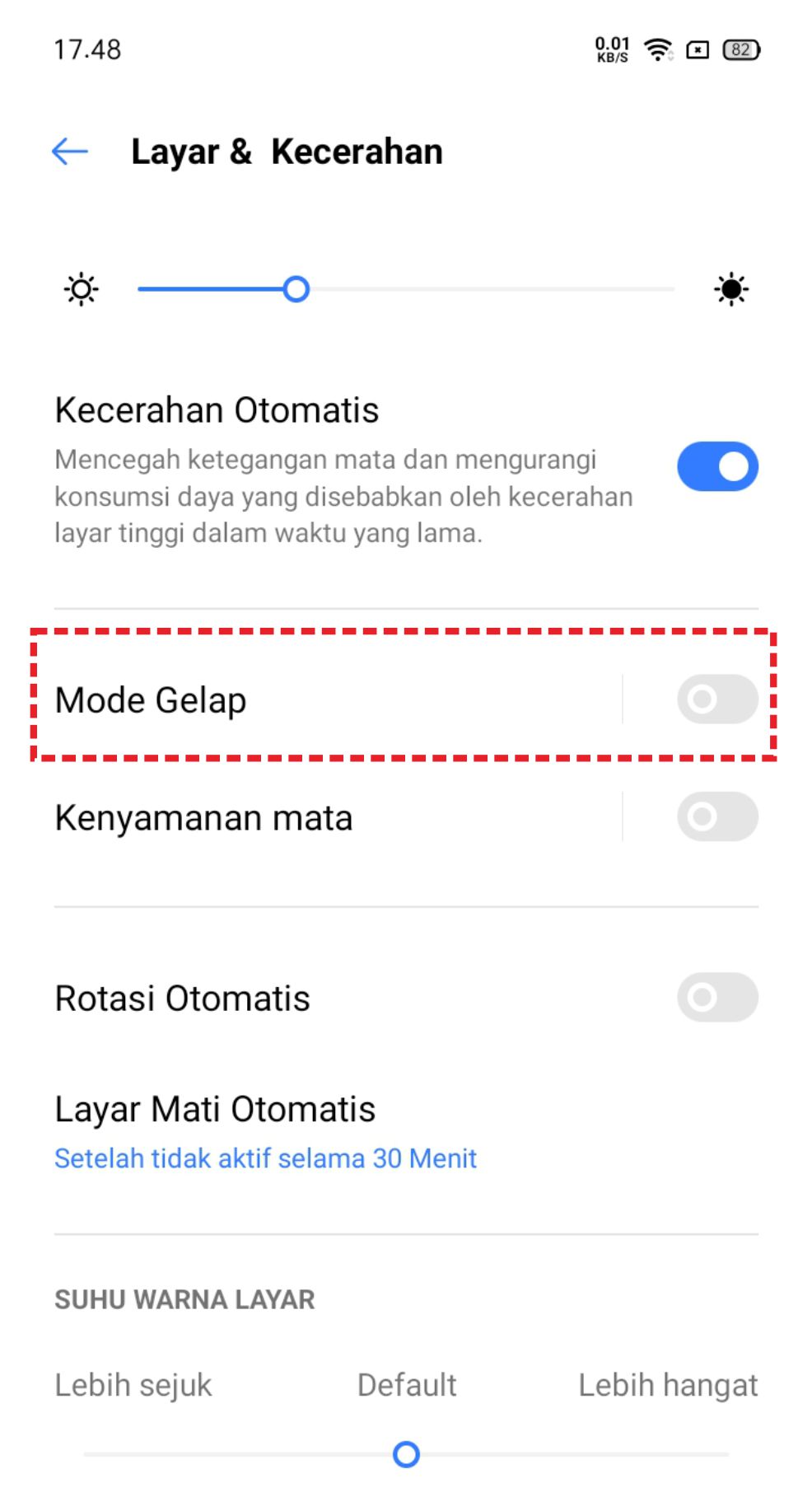 3. Langkah selanjutnya, pilih menu mode gelap.