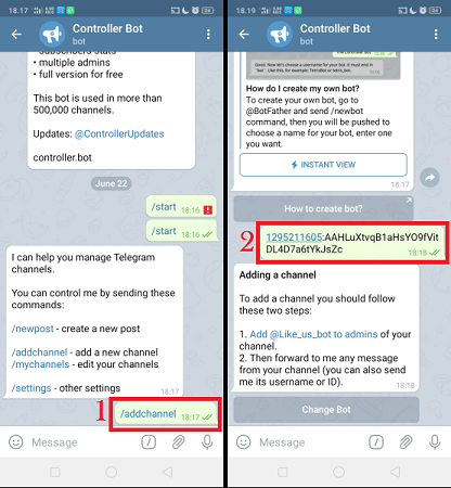 6. Buka kembali Controller Bot, dan paste-kan invite link. Klik username untuk membuat post/pesan.