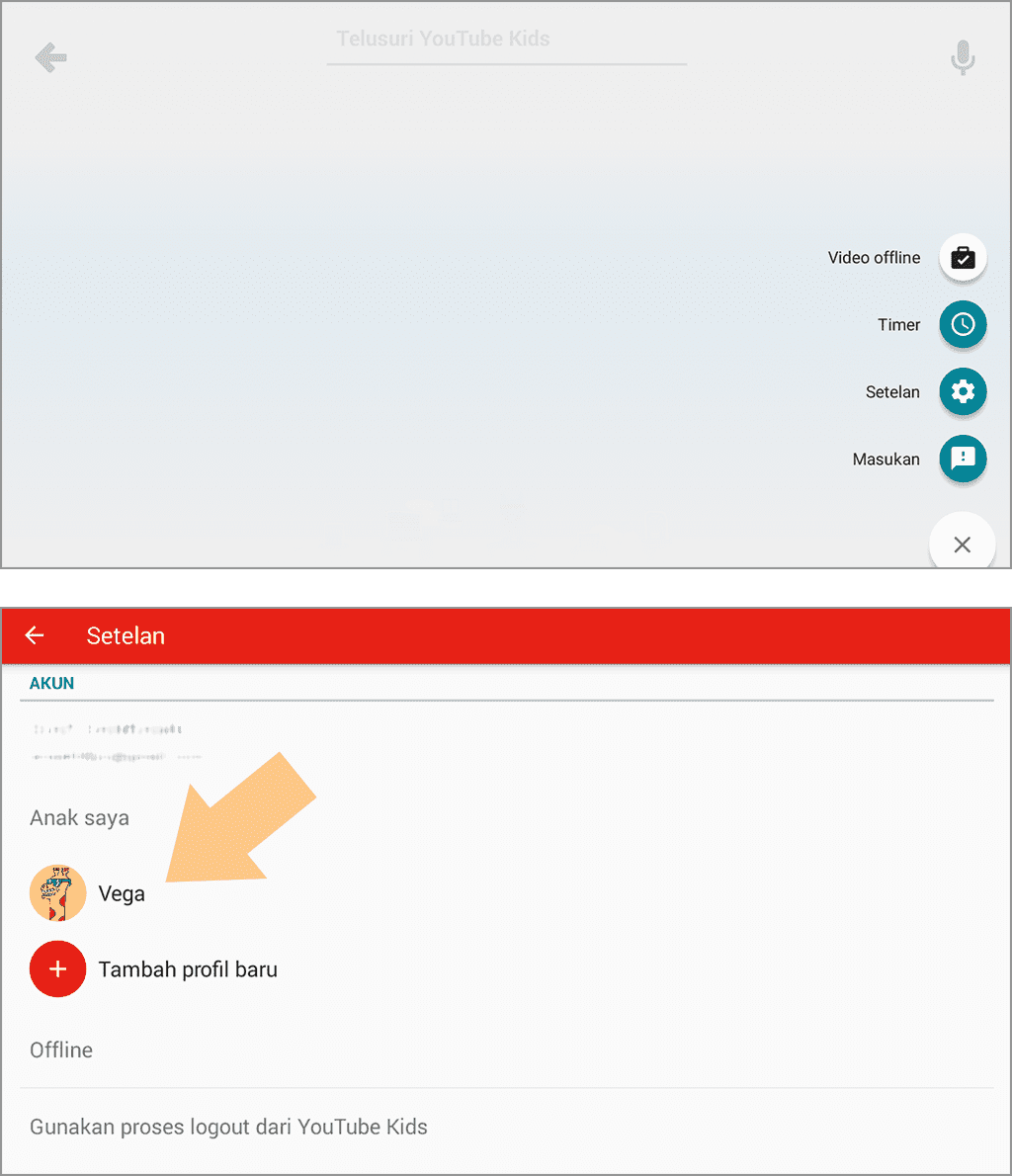 4. Pilih setelan, kemudian ketuk foto profil Youtube Kids anak.