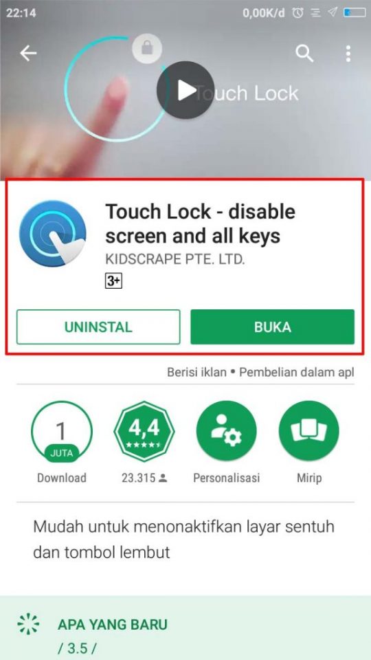Langkah pertama, download dan install aplikasi Touch Lock di Play Store.