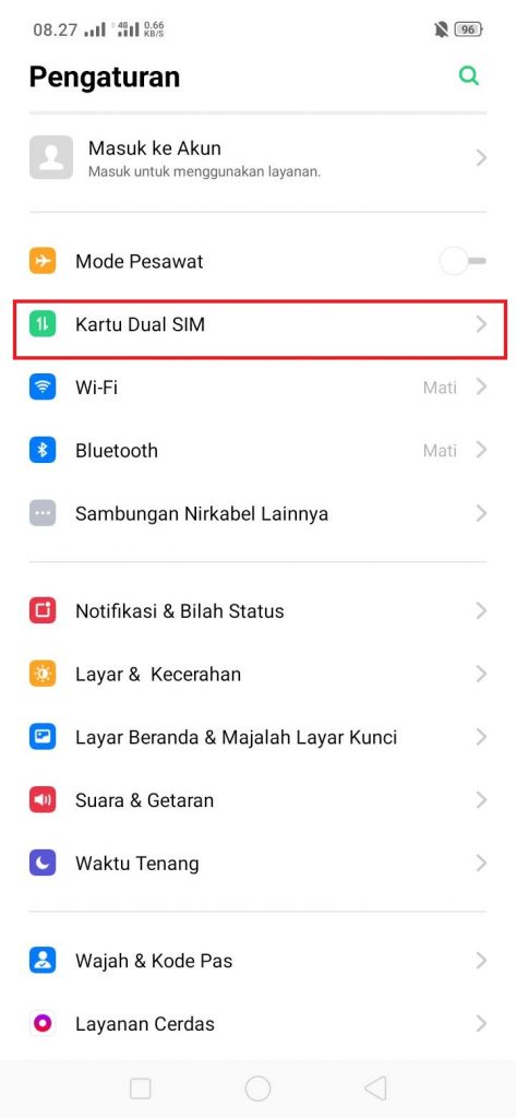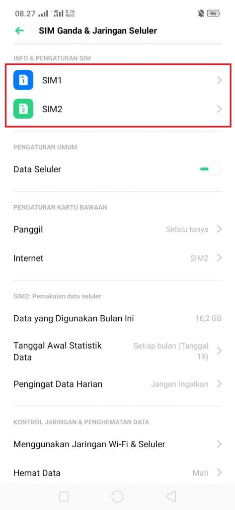 3. Tekan Kartu Dual SIM.