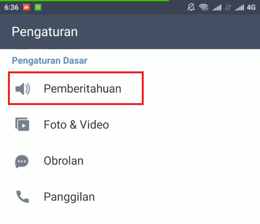 3. scroll kebawah sampai kamu menemukan menu pemberitahuan atau notifications, lalu kami tap menu tersebut.