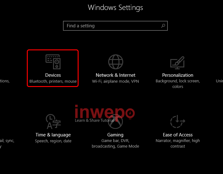 1. Pergi ke Windows Setting – Klik Devices.