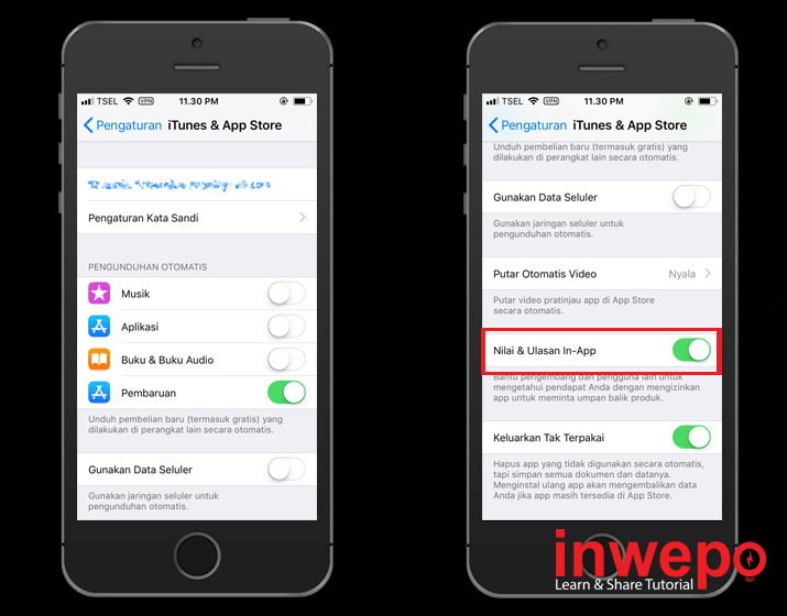2. Scroll ke bawah – aktifkan Nilai & Ulasan In-App.