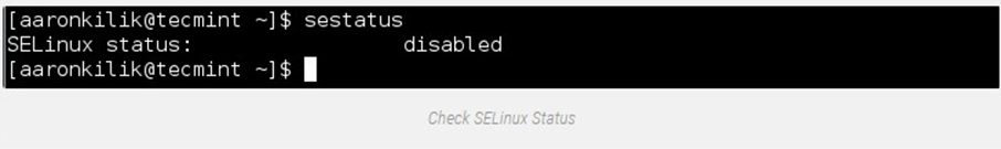 Kemudian, simpan dan keluar file, agar perubahan diterapkan, kamu perlu me – reboot sistem kamu dan kemudian memeriksa status SELinux menggunakan perintah sestatus seperti yang ditunjukkan: