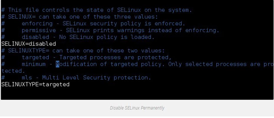 Metode-metode di atas hanya akan berfungsi sampai reboot berikutnya, oleh karena itu untuk menonaktifkan SELinux secara permanen, pindah ke bagian berikutnya.