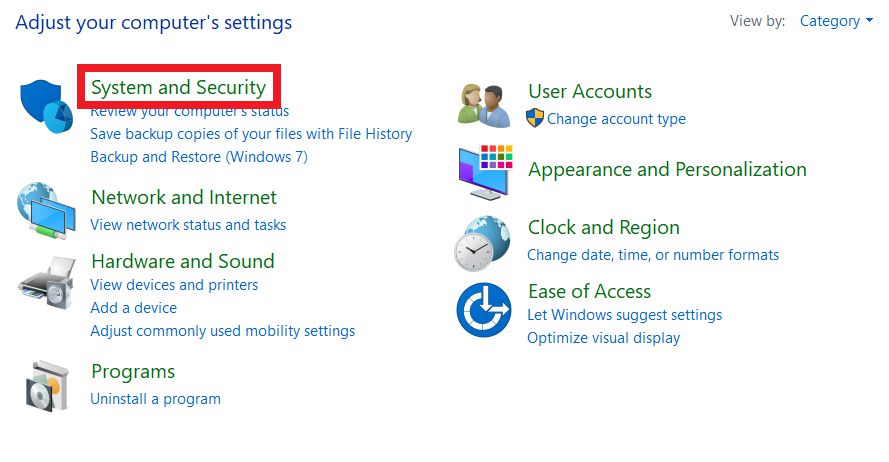 2. Lalu di Control Panel kamu klik pada menu System and security.