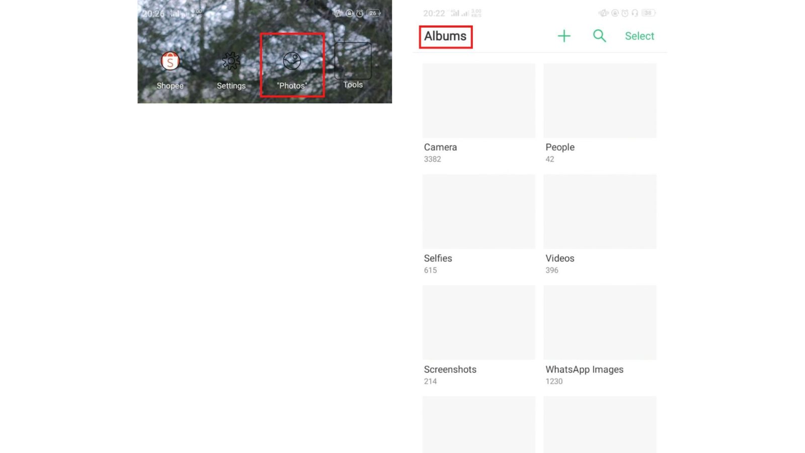 2. Tap Photos atau Galery maka setelah itu akan muncul Albums.