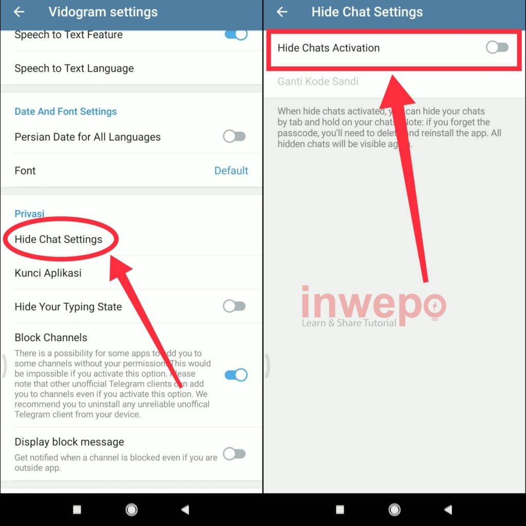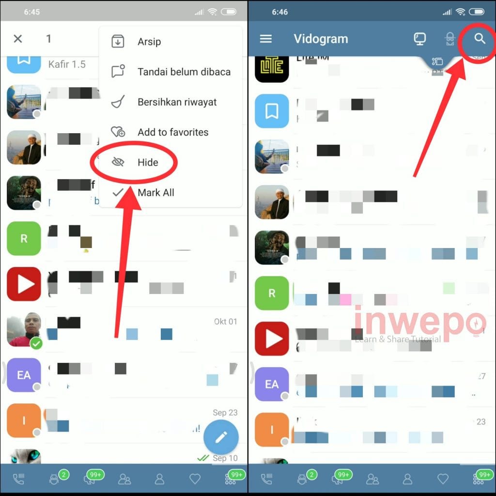 Nah, kali ini inwepo akan membagikan sebuah trik untuk menyembunyikan obrolan chat kita yang ada di Telegram. Dari pada berlama-lama langsung saja ke tutorialnya di bawah ini.